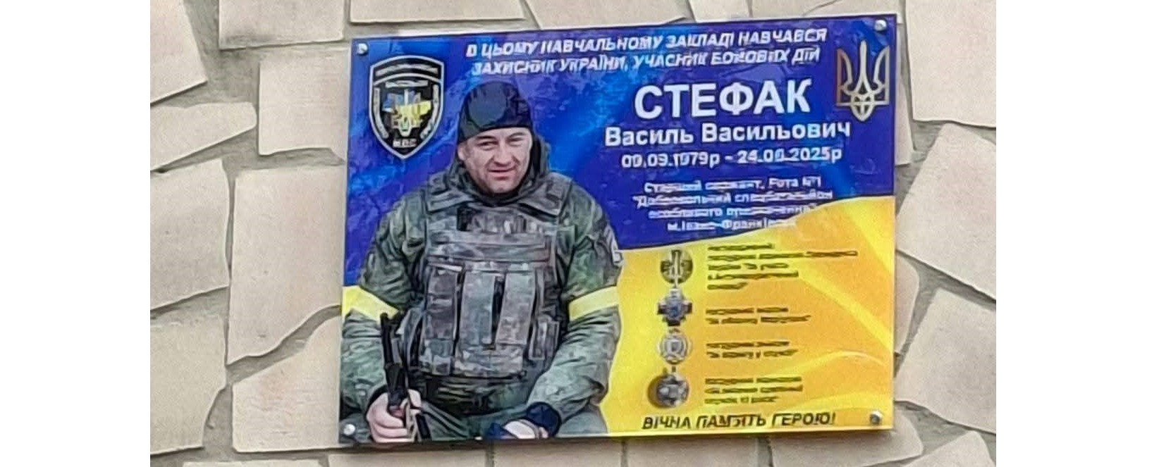 Сьогодні на фасаді Рунгурського ліцею з’явився символ вічної шани та вдячності - меморіальна дошка на честь відважного захисника України Василя СТЕФАКА