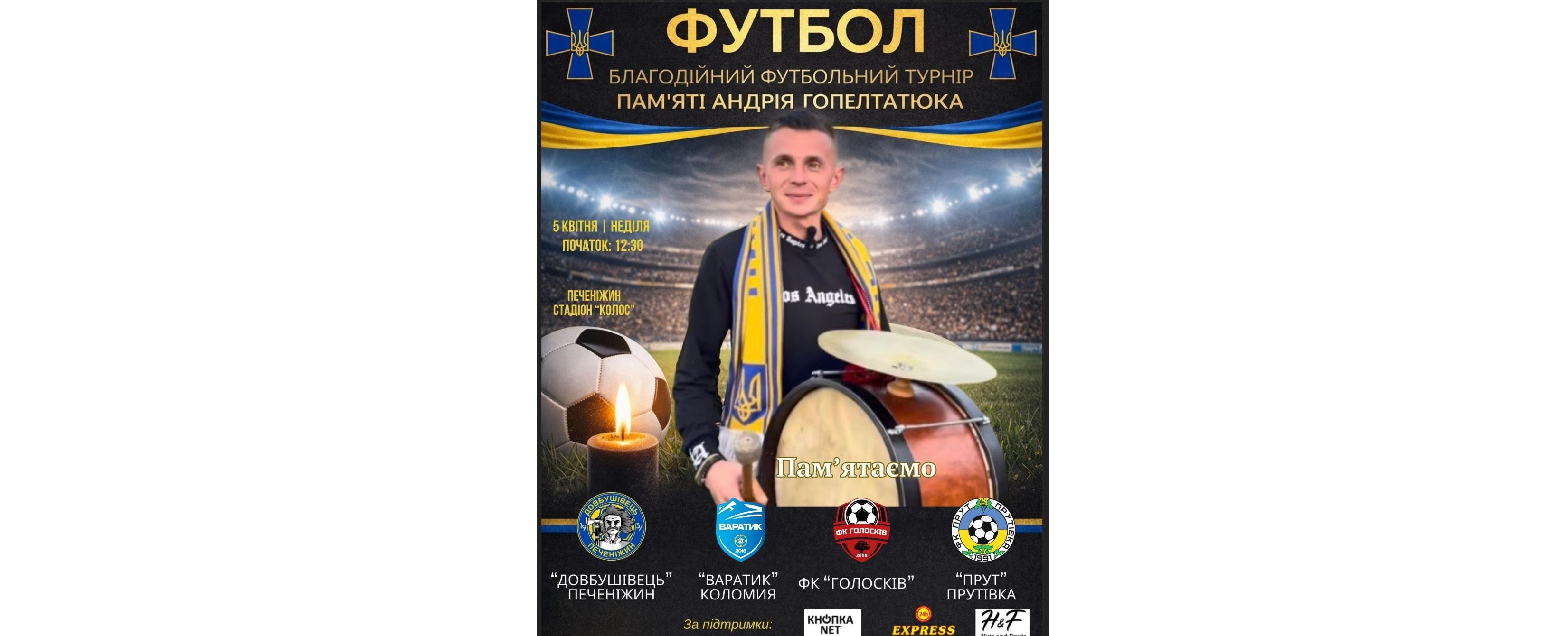 В неділю 5 квітня в Печеніжині відбудеться благодійний футбольний турнір памʼяті мужнього воїна та щирого фаната «Довбушівця» Андрія Гопелтатюка!