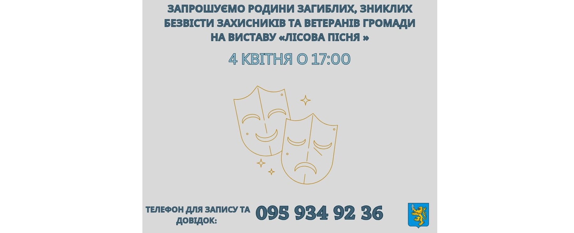 Запрошуємо родини загиблих, зниклих безвісти Захисників та ветеранів нашої громади у суботу, 04 квітня 2026 року о 17:00 у Коломийському драмтеатрі на перегляд вистави «Лісова пісня»