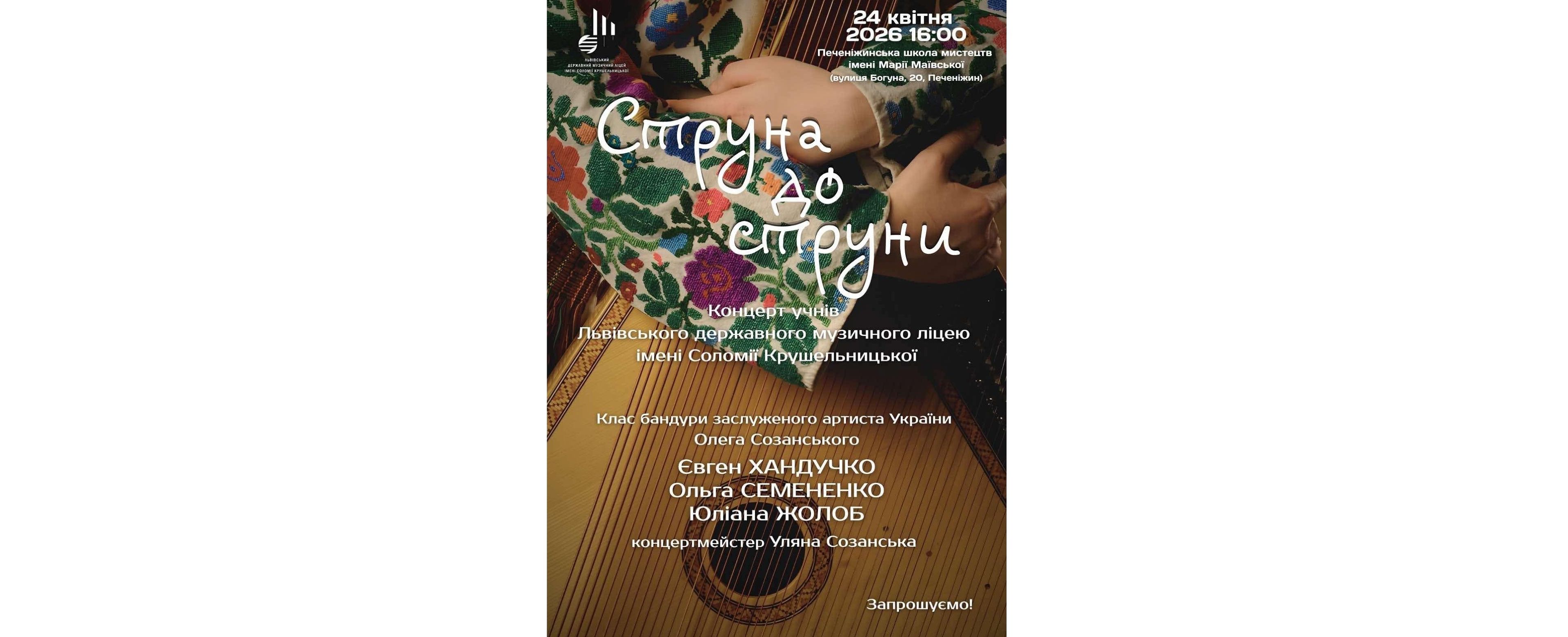 Щиро запрошуємо стати частиною особливого музичного вечора - концерту учнів Львівського Державного Музичного Ліцею імені Соломії Крушельницької