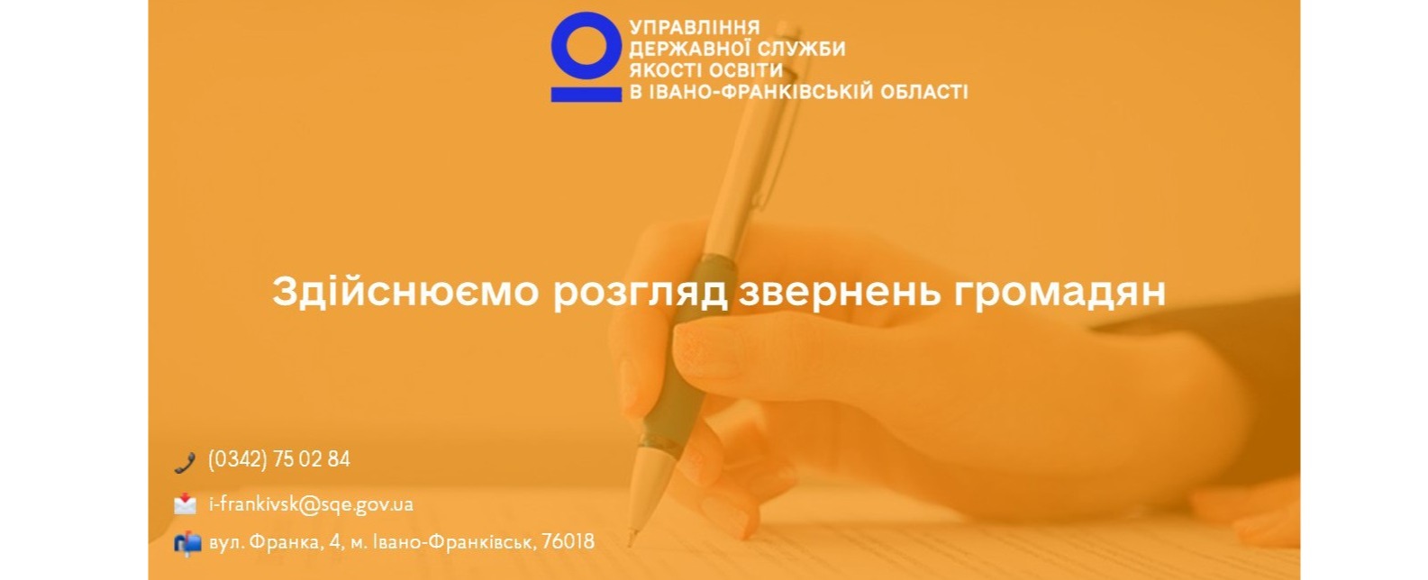 - i-frankivsk@sqe.gov.ua; вул. Франка, 4, м. Івано-Франківськ, 76018.