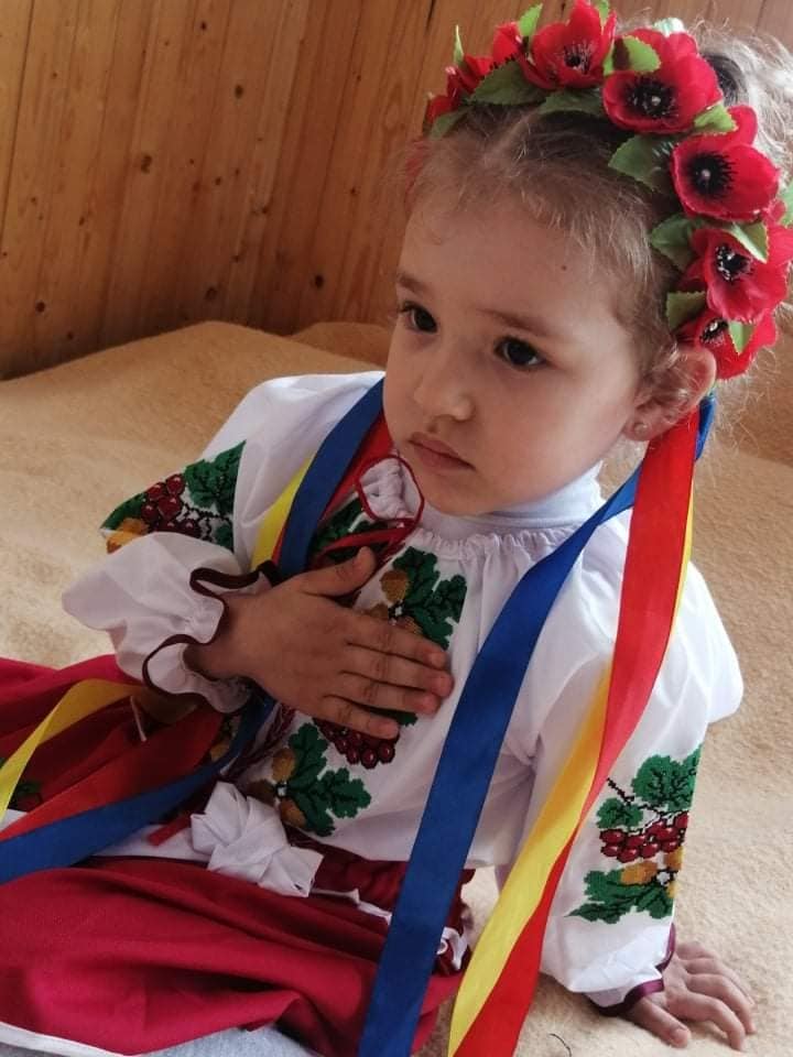 Кірочка Якуніна з Миколаєва разом із мамою, дідусем та братиком зараз проживають в Молодятинській гімназії, тато залишився захищати рідну землю.