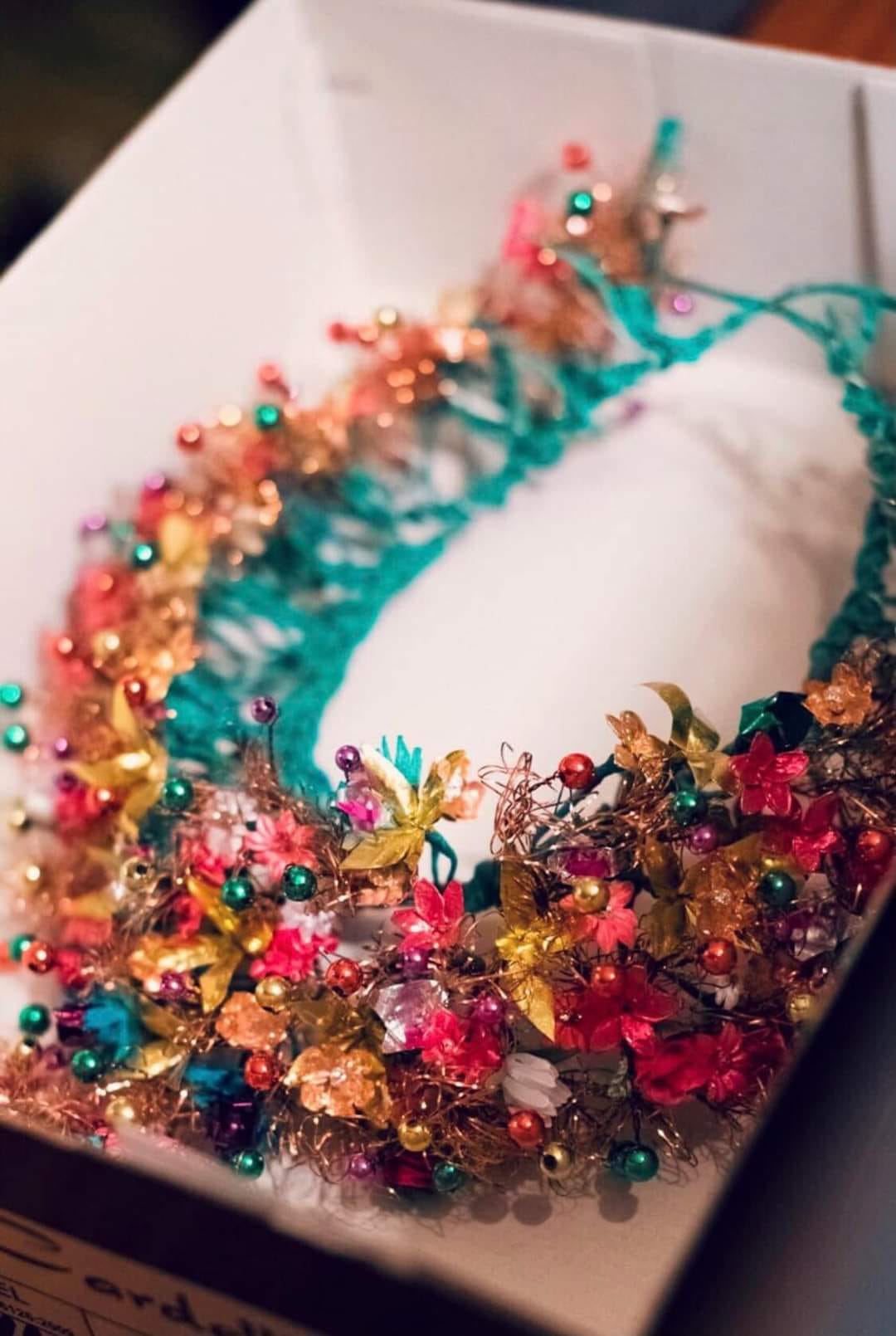 Вінок складався з передньої частини і з п’ятьох задніх частин (називали їх батогами). Вони з’єднувалися між собою і уквітчували все розплетене волосся молодої.