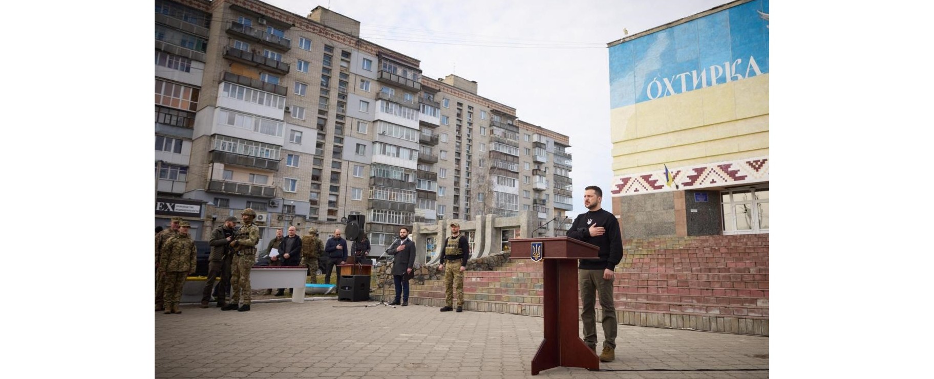Президент зазначив, що Охтирка пережила важкі втрати й жорстокі ворожі удари, коли російські загарбники били з авіації по житлових кварталах, обстрілювали з реактивної артилерії дитячий садок та іншу цивільну інфраструктуру, коли забирали життя людей.