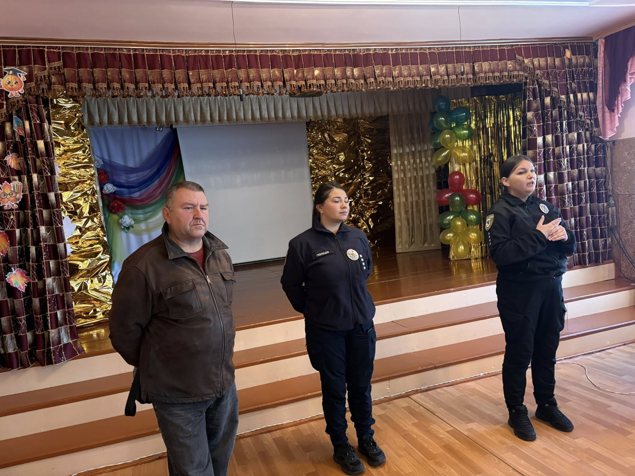Володимир Знайда, головний спеціаліст служби у справах дітей Печеніжинської ТГ, та працівники Коломийського районного відділу поліції Головного управління Національної поліції в Івано-Франківській області на чолі з начальником сектору ювенальної превенції відділу превенції Марією Новак.