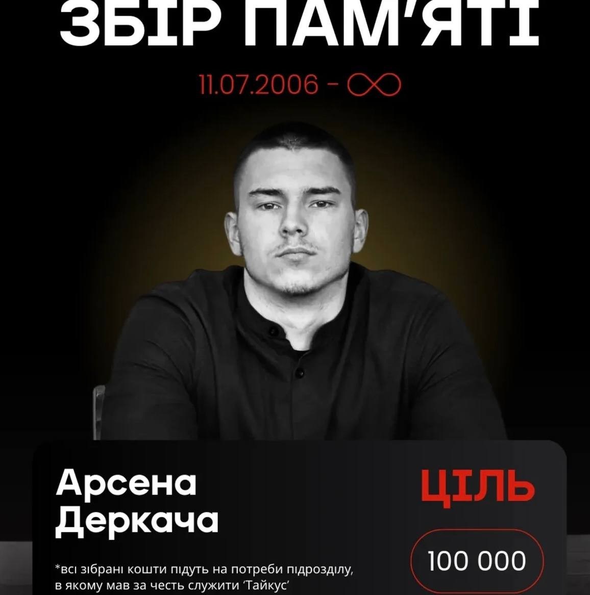 Рідні загиблого Героя Арсена Деркача оголосили збір коштів для підтримки підрозділу, в якому служив юний «Тайкус»