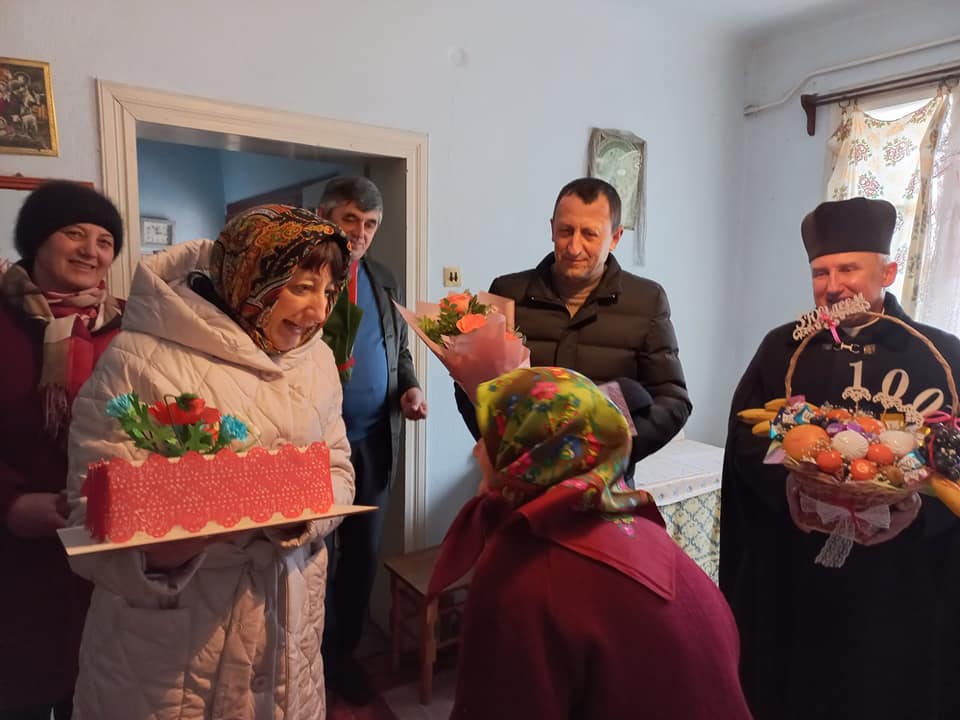 Зі словами щирих привітань, побажань міцного здоров’я, радості та миру завітали до ювілярки селищний голова Ігор Довірак, староста села Любов Шовгенюк, настоятель храму о. Олег, директор будинку культури Богдан Микитюк.