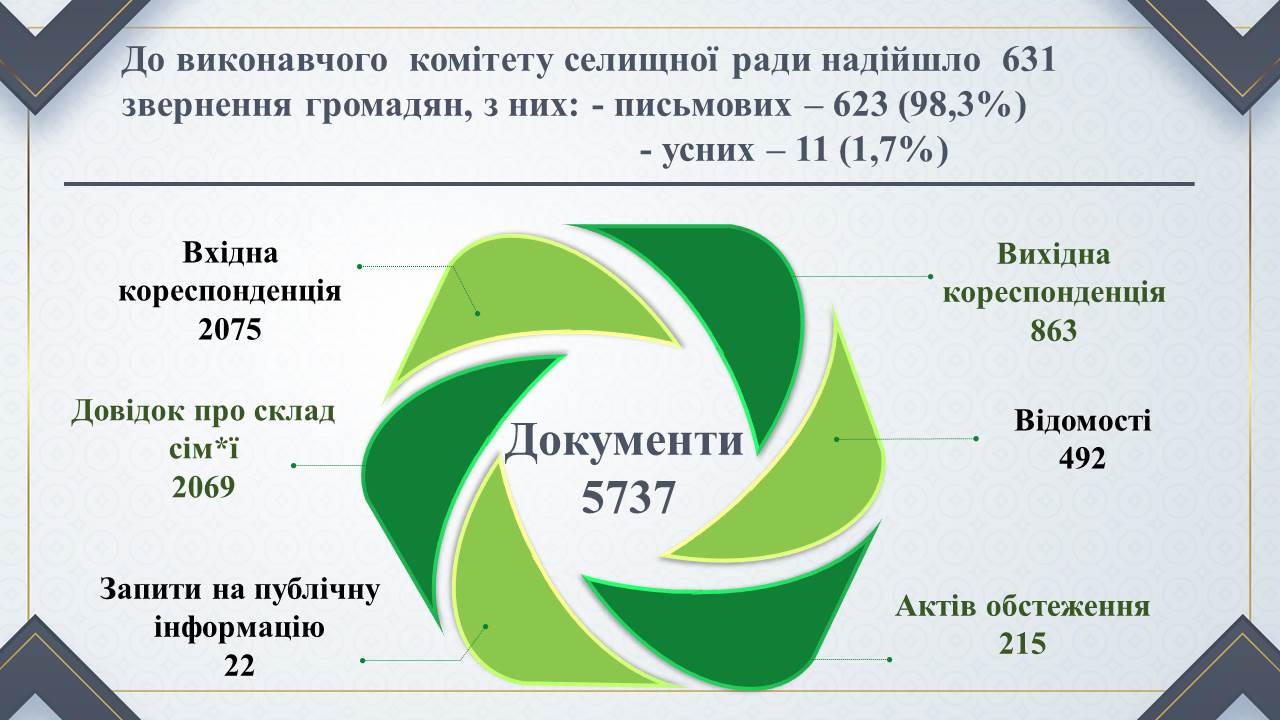Минулий рік був непростим, перед нами постало чимало викликів пов’язаних з пандемією, зростанням цін на енергоносії, збільшенням сфер відповідальності громади. Проте нам вдалося з гідністю підвести підсумки минулого року та з новими перспективами розпочати 2022 рік".