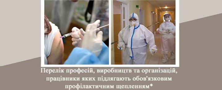 Перелік професій, виробництв та організацій, працівники яких підлягають обов'язковим профілактичним щепленням*