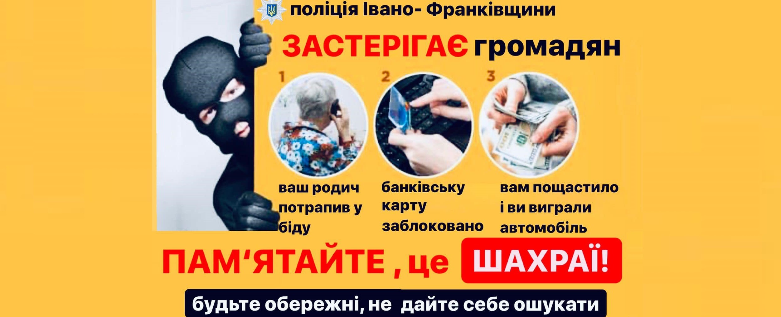 Прикарпаські поліцейські закликають громадян бути обачними, аби не стати жертвами шахраїв!